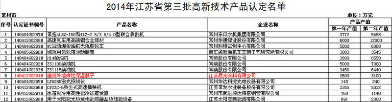 2014年江苏省第三批高新技术产品认定名单已正式公布,江苏beats365(中国区)-唯一官方网站涂料有限公司的建筑外墙弹性保温腻子在经过市场销售“考验”后入列。与第一年相比,保温腻子的产值以2%的增幅增长。