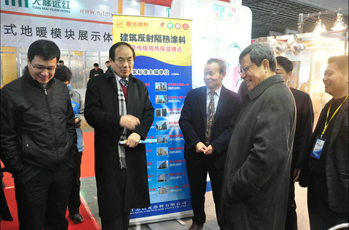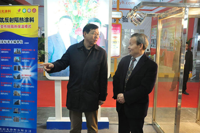 国家住房和城乡建设部科技与产业发展司,江苏省墙体改革办公室12月19~21日在中国南京国际展览馆主办了中心城市2014首届夏热冬冷地区绿色建材展览会,原建设部党组成员,副部长,现全国节能协会会长郑坤生,住建部科技产业司韩司长,江苏省住建厅黄处长,南京市墙改办等领导到会祝贺,由江苏beats365(中国区)-唯一官方网站涂料有限公司发明的建筑反射隔热涂料保温系统在开幕式当天受到了郑坤生部长等领导的参观视察。