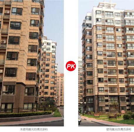 在光照条件下,其中的活性物质会发生较好的光催化反应,产生出羟基自由基,纳米涂料表面亲水,使粉尘污染物很容易被雨水冲掉,最终达到外饰面自清洁效果。