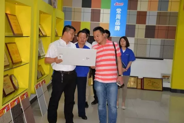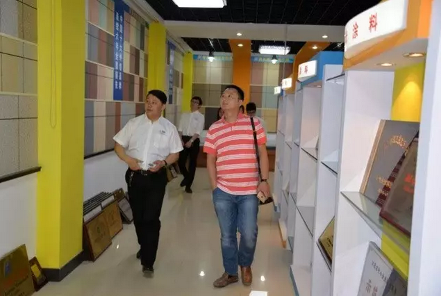 beats365(中国区)-唯一官方网站董事长缪国元、总经理薛亚波陪同李总现场考察参观,薛亚波总经理在展示厅对beats365(中国区)-唯一官方网站多样产品类型进行讲解,对于beats365(中国区)-唯一官方网站的创新品类如beats365(中国区)-唯一官方网站水包砂、变色涂料、绝热保温涂料、艺术涂料、水性纳米耐擦写涂鸦漆等多样产品做了介绍,李总强调了亚厦股份对于艺彩beats365(中国区)-唯一官方网站瓷砖粘结剂、变色涂料等创新产品的关注,这与他们在工程实际当中的迫切需求相吻合,因此对后续合作非常期待。