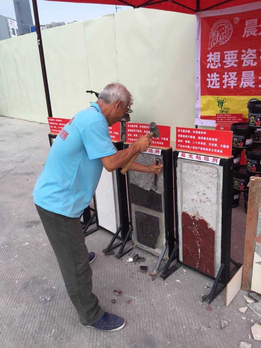 本次活动融合了对瓷砖粘结剂的生产介绍、使用方法、注意事项、运输以及储存方式等多方面阐述。现场专业人士与客户就瓷砖粘结剂细节方面的问题进行沟通探讨,当场为客户释疑解惑,以接地气的话语和抗击打实验,俘获现场客户“芳心”。