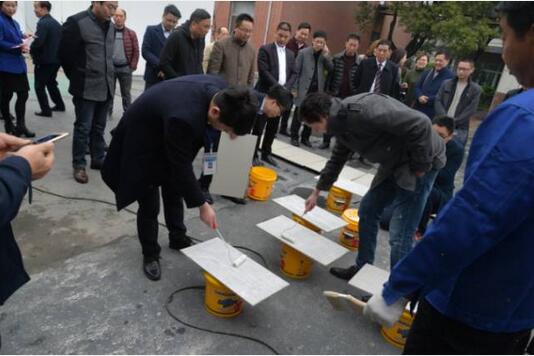 为了更好地展示粘结剂的超强性能,beats365(中国区)-唯一官方网站缪总、薛总特意组织造访团现场进行瓷砖粘贴,在园区内部开辟场地,供到场企业使用艺彩beats365(中国区)-唯一官方网站瓷砖粘结剂现场铺贴瓷砖,以勇于展示自我的行动力展示对粘结剂的自信心,并相约半个月后再来“打砸”见证品质,受到了彭会长及到场装饰企业代表的积极响应,不但现场亲自粘贴瓷砖,而且纷纷表示对于半个月后的赴约“打砸”非常期待。