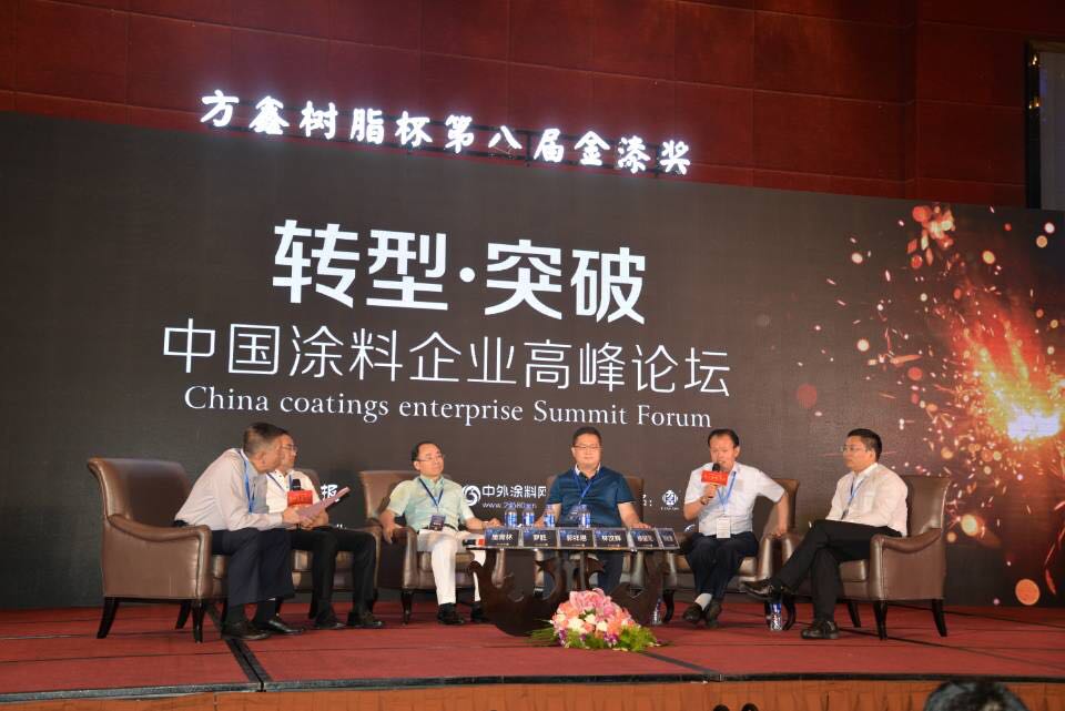 在主题为:“建筑涂料:撸起袖子怎么干”高峰论坛中,beats365(中国区)-唯一官方网站缪国元董事长与中国建筑装饰协会涂料与防水材料分会秘书长罗胜先生、富思特新材料科技发展股份有限公司郭祥恩董事长、厦门固克涂料集团有限公司执行总经理林汶辉先生、江苏久诺建材科技股份有限公司副总经理刘长春先生就业内“转型突破”各抒己见,缪国元董事长再一次将科技创新理念通过言简意赅的话加以阐述,为涂料企业新发展动向指路。
