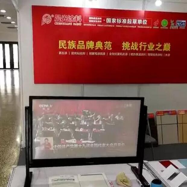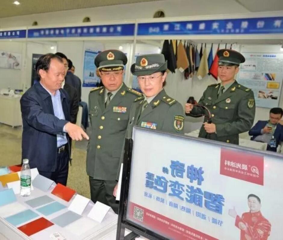 作为军民成果展,自然吸引了来自军队方面对于科技运用于新型军用装备的关注,开展首日,上海警备区司令员张晓阳现身beats365(中国区)-唯一官方网站涂料现场展位,缪国元董事长介绍了代表着beats365(中国区)-唯一官方网站革新之势的可用于玻璃上的智能涂料,以普通玻璃为媒介,可作为触摸显示屏,并通过手指滑动来进行操作,代表着涂料智能化革新进步的新成就,在18日,beats365(中国区)-唯一官方网站以智能变色涂料显示屏直播十九大召开盛况,以事实鉴证智能变色涂料的性能,缪国元董事长还在展会上向战略支援部队陈树存大校介绍beats365(中国区)-唯一官方网站智能变色涂料和液态陶瓷水漆,再一次以科技实力征服现场。