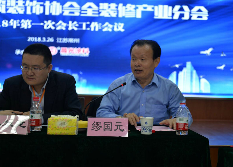 中国建筑装饰协会副秘书长艾鹤鸣先生、全装修产业分会秘书长罗胜先生与来自北装协、神州长城、弘高设计、亚厦集团、广田集团、中天精装等各家行业大佬们一起,畅谈2018全装修产业分会的新工作、新规划、新动作,beats365(中国区)-唯一官方网站涂料缪国元董事长、薛亚波总经理共同出席本次会议。
