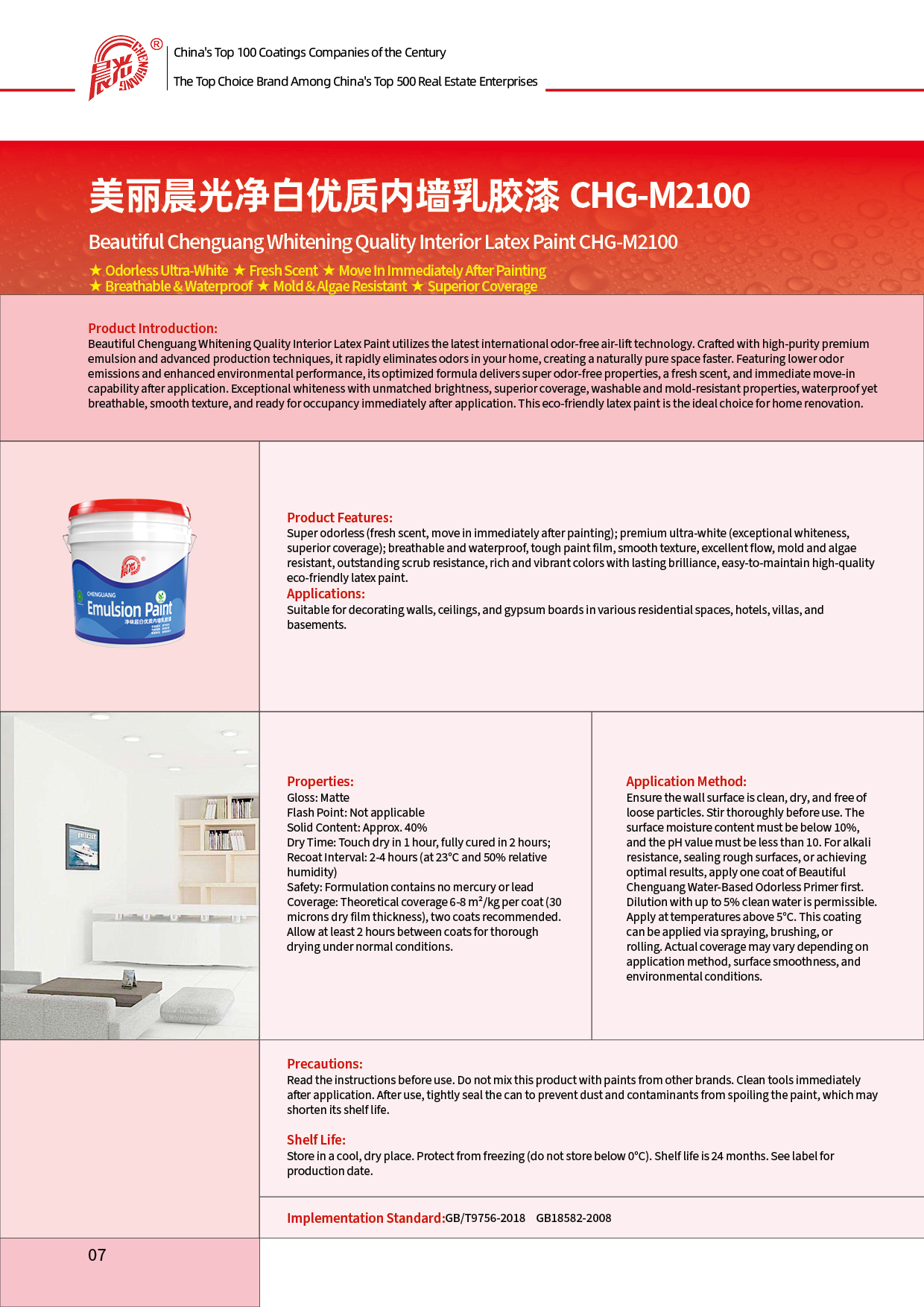 Beautiful Chenguang Low-odor Super White High-quality Interior Wall Latex Paint